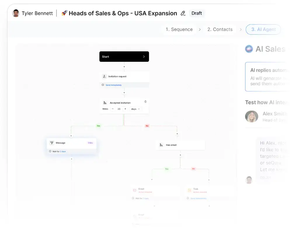 Run multi-channel sequences via email, LinkedIn, and SMS, all powered by AI.